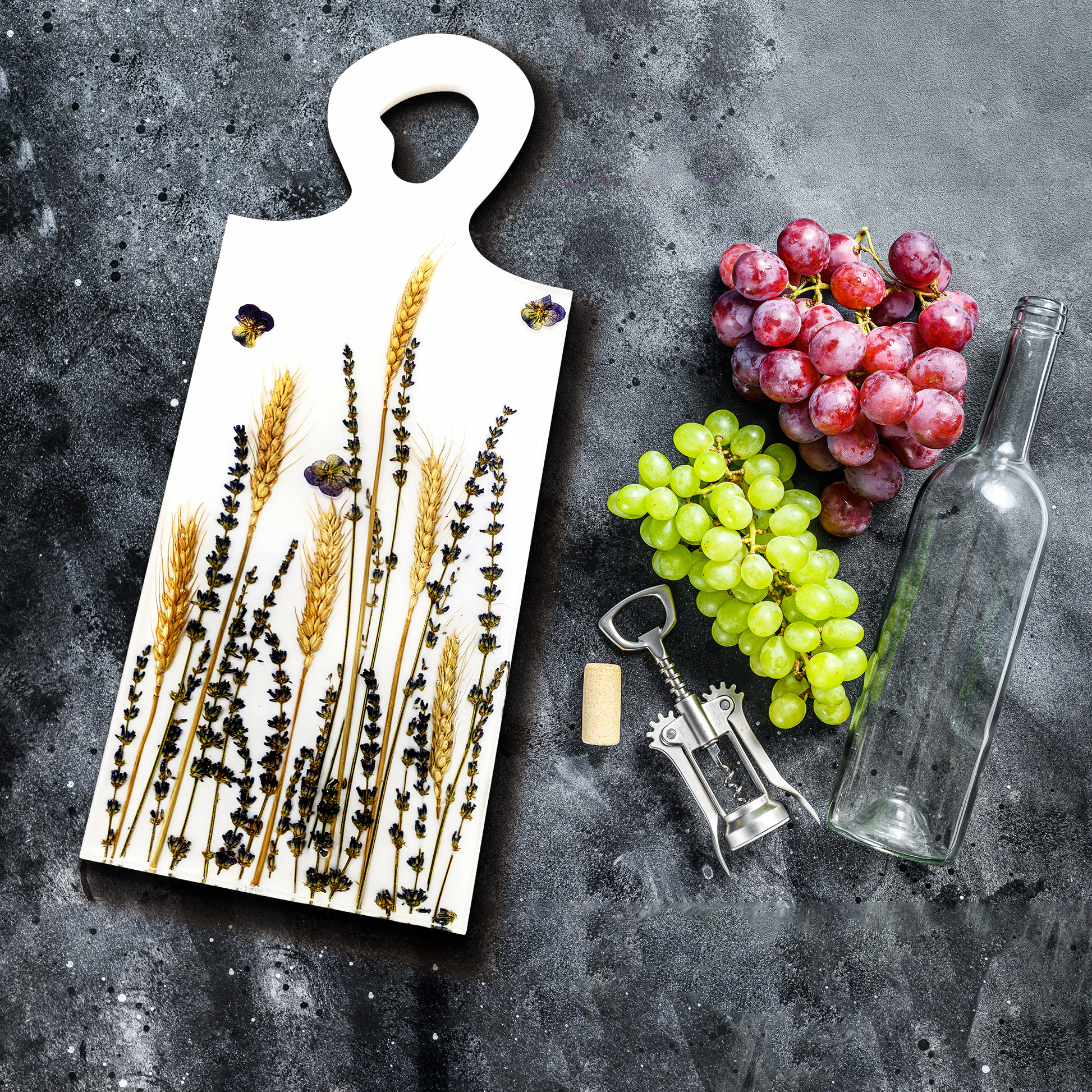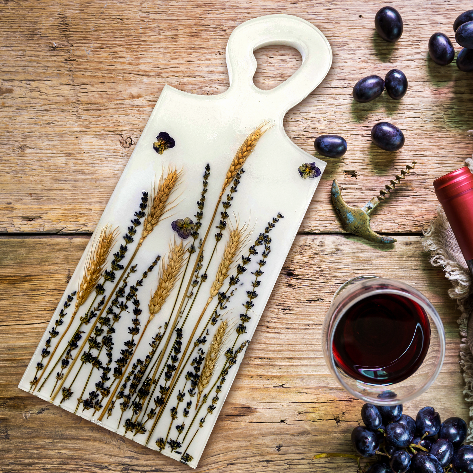 Not only will this charcuterie board add a touch of luxury to your home, but it will also bring you closer to the natural world and the wonders it holds. The wheat and lavender in this board are a reminder of the abundance and nourishment that the earth provides, and the care and skill that went into creating this piece.