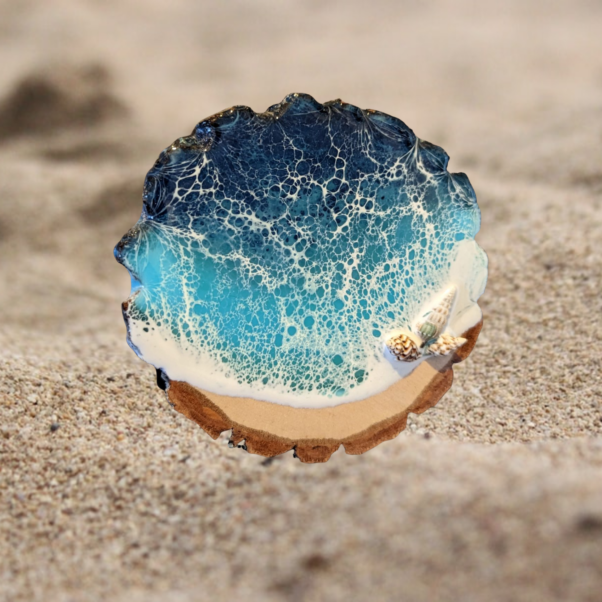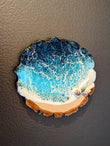 The Live Edge Ocean Magnet is a unique and beautiful resin art magnet that brings a touch of the ocean to any surface. Featuring a live edge design, this magnet showcases the natural beauty of wood and the mesmerizing blue hues of the ocean.
