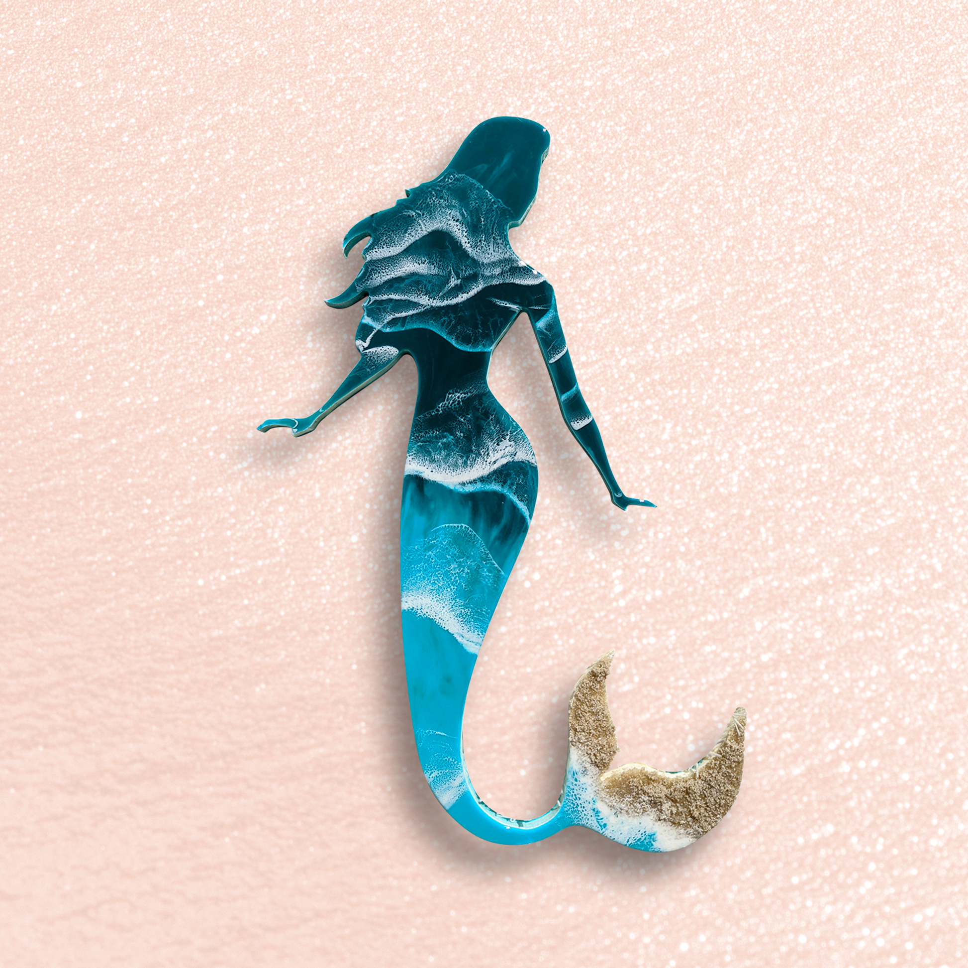 Introducing our beautifully crafted mermaid with an ocean-inspired design. The attention to detail in this piece is truly remarkable, with waves rolling over the mermaid's body and crashing onto a sandy beach at the end of her tail. The ocean effect is incredibly realistic, giving the piece a sense of movement and life.